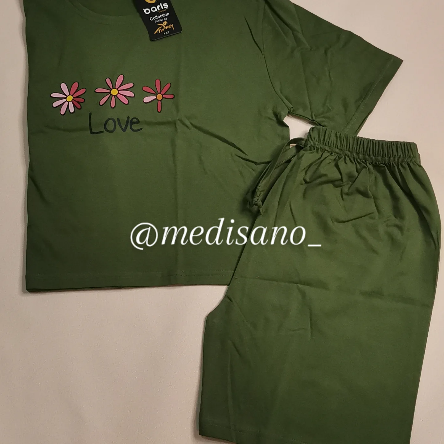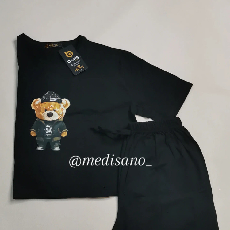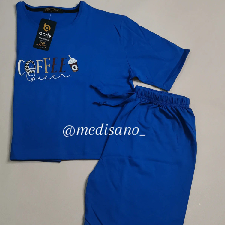 تیشرت و شلوارک باریش گلدن ترک اصلی جنس نخ پنبه عالی سایز لارج و ایکس لارج مناسب از سایز 36 تا سایز 46 قد تیشرت 45 سانت و قد شلوارک 40 سانت است