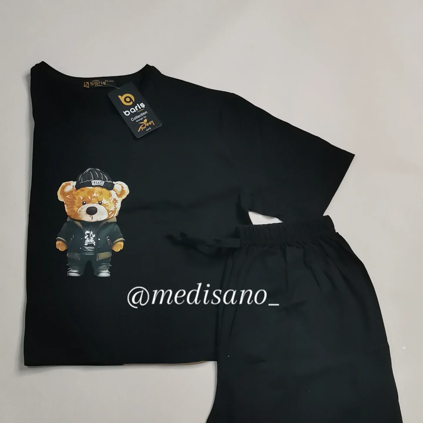 تیشرت و شلوارک باریش گلدن ترک اصلی جنس نخ پنبه عالی سایز لارج و ایکس لارج مناسب از سایز 36 تا سایز 46 قد تیشرت 45 سانت و قد شلوارک 40 سانت است: 350 گرم