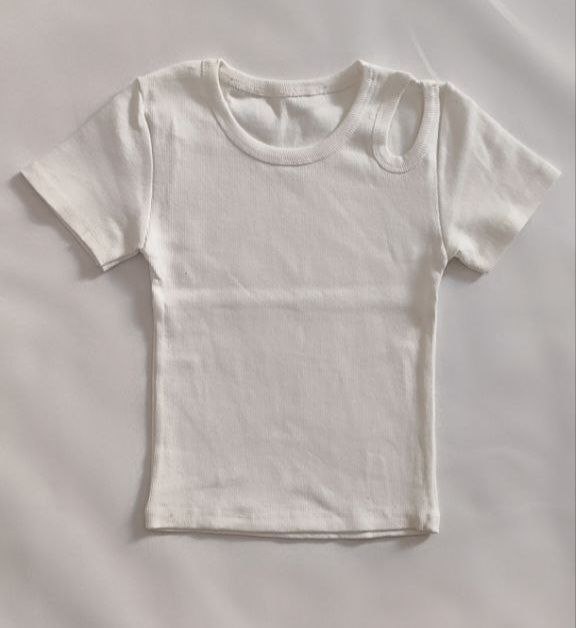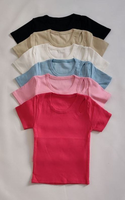 کراپ تیشرت سرشانه اشکی یقه گرد کبریتی نخ پنبه جنس عالی تضمینی فری سایز از 36 الی44 قد 45